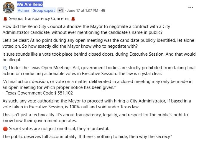 - Court Ordered for City of Reno to Find another City Secretary since August 2023 still haven’t followed through. Even the City Attorney said she couldn’t hold this seat.